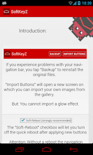 This application will let you change the SoftKeys / Navigation Buttons fast and easily. This app comes with more than 150+ different soft-buttons to choose from and more will be added with every update. If you got some navigation buttons you would like to see in this app just write an email about it. Until I’ve added them, you can just use the import feature for these soft keys. This application needs root and “BusyBox” to be installed. This app will NOT overwrite your applied themes, or enable the navigation buttons on devices without them.