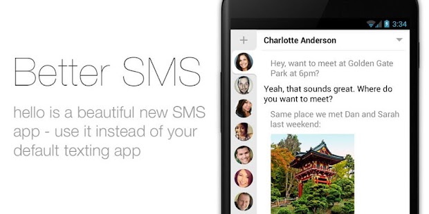 You can group chat easily, send and receive photos quickly, and switch between chats with a single touch. Hello is a streamlined way to text: no inbox, no clutter, no ads. Just you and your conversations.