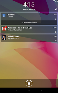 LockerPro monitors notifications coming from any app on your device, and displays them as banners on your lock screen. You can easily swipe them away by swiping them to the left, or launch the notification by swiping to the right.