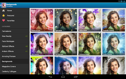 - background effects to change surrounding of your photo into a dreamlike scenery or delicate wings of tropical butterflies.