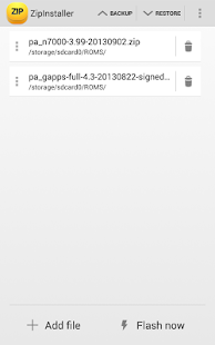 ZipInstaller is a little app that makes it faster to pick up and install the zip files you want to install via recovery. Instead of using the volume and power keys to select the different options inside the recovery, you can pick up all the zips you want with your favorite file manager from the sdcard and choose wether you want to wipe cache and/or data, that’s it. You also can send the ZIPs you want through the send/share menu of your file manager.