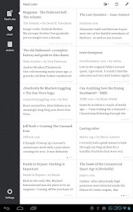 Instapaper for Android provides a mobile-optimized Text view that makes reading Internet content a clean and uncluttered experience. Read offline, even on airplanes, subways, on elevators, or on Wi-Fi-only devices away from Internet connections.