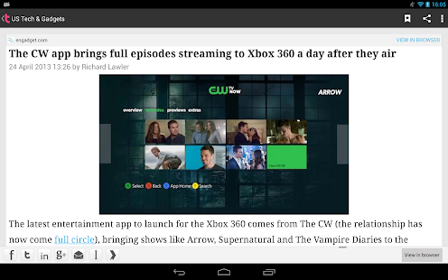 * Post to, like, comment or re-tweet from your Facebook, Twitter, and LinkedIn streams