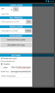 TeXPortal makes it possible to compile TeX and LaTeX documents on your Android device locally (without Internet access).